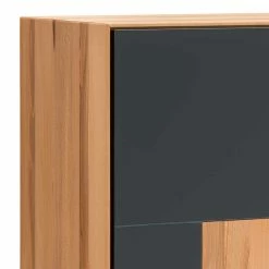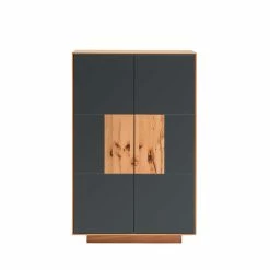 - Türen aus solider MDF, mit einer satinierten Glasfront in Anthrazit und einer einzigartigen Applikation aus astiger Kernbuche