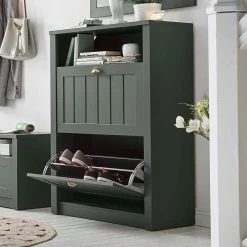 80x112x36 Landhaus Schuhschrank In Dunkelgrün – Niestov