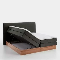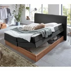 - Attraktives Boxspringbett in Anthrazit und Walnussfarben
