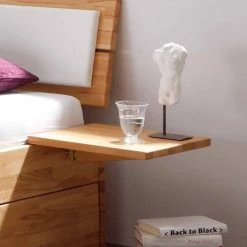 - Mit Anstecknachttisch (bei Liegeflächenbreite 120 und 140 cm je ein Anstecknachttisch, bei allen größeren Bett 2 Stück), Maße: BxT: je 40×35 cm