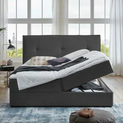 Dunkelgraues Polsterbett Mit Bettkasten – Epos
