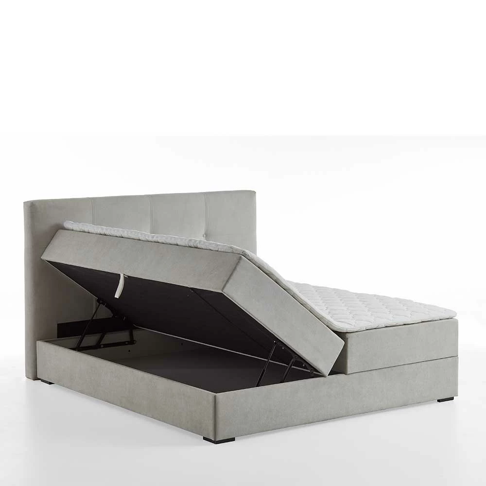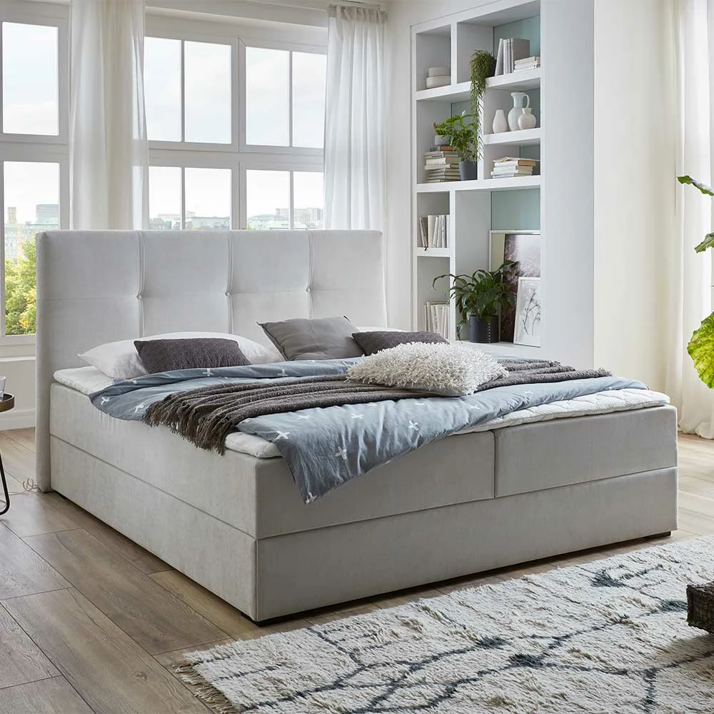 - Repräsentatives Boxbett in Hellgrau