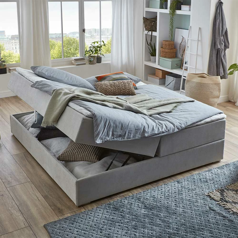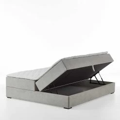Hellgraues Stoffbett Ohne Kopfteil Mit Bettkasten – Craig