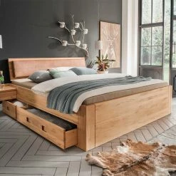 Kernbuche Doppelbett Mit 2 Schubladen – Rudacia III
