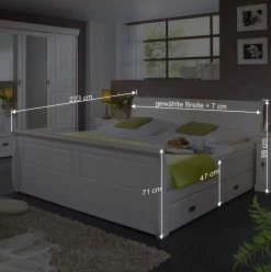 - Geräumiger Bettkasten auf beiden Seiten, Innenmaße (BxHxT): ca. 150x20x61 cm