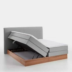 - Stilvolles Boxspringbett in Grau und Walnussfarben