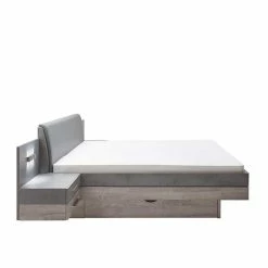 - Großartiges Doppelbett mit Nachtkommoden in Eiche Grau und Betonoptik