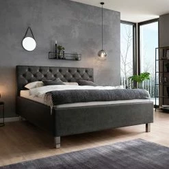 - Erstklassiges Polsterbett in Anthrazit und Chromfarben