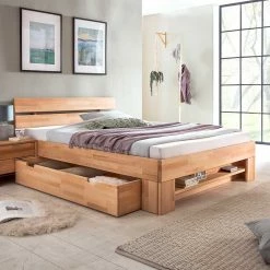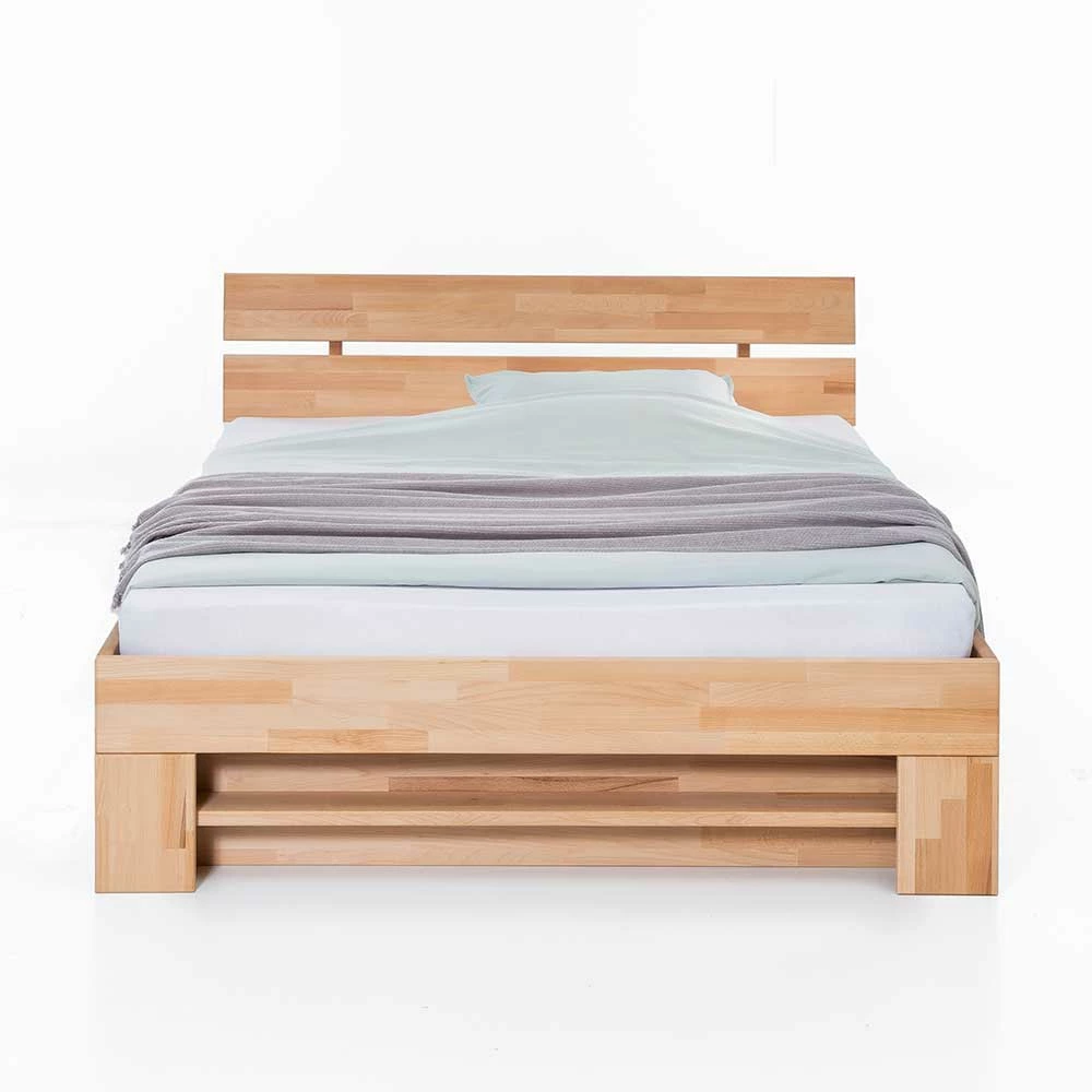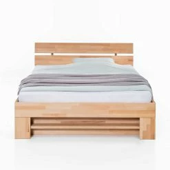 Naturfarbenes Kernbuche Bett Mit Kopfteil – Nucet
