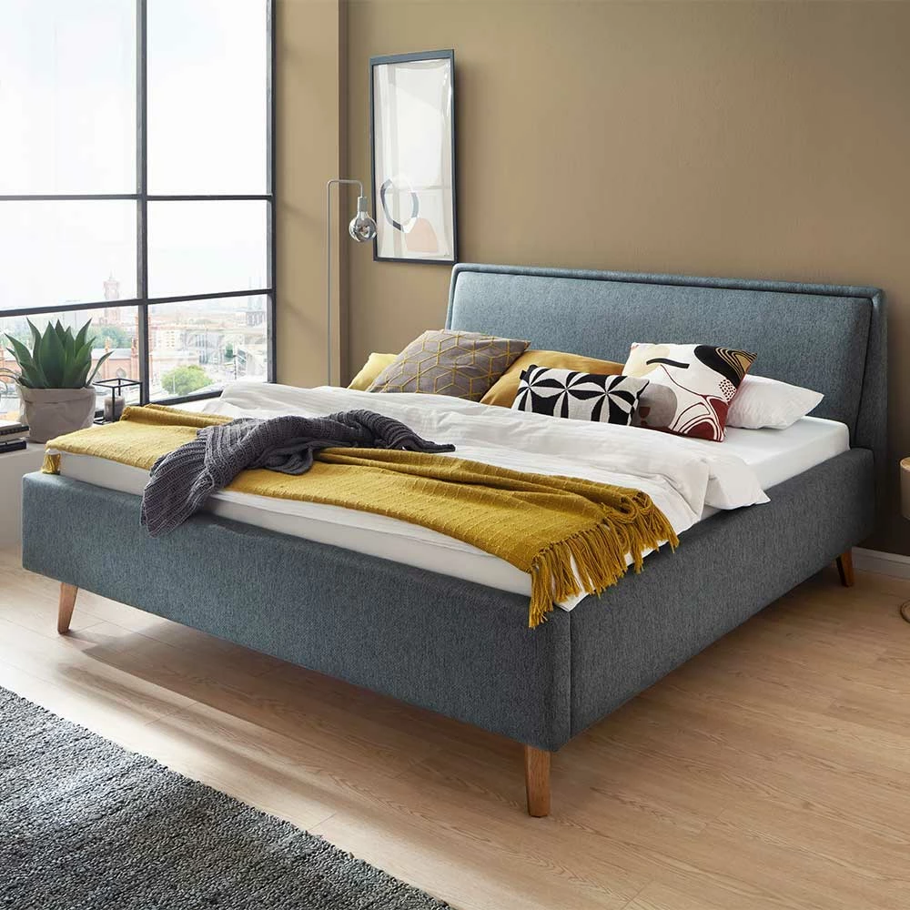 - Angesagtes Polsterbett in Blaugrau und Eichefarben