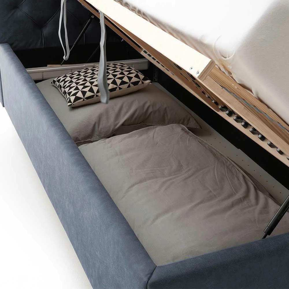 Polsterbett In Blaugrau & Schwarz – Renzo