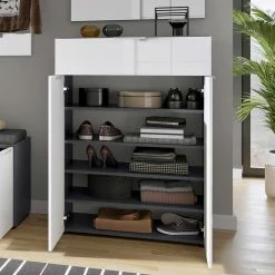 - Aparter Schuhschrank in Dunkelgrau und Weiß