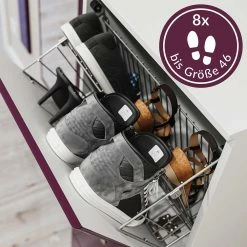 - Innen finden bis zu acht Paar Schuhe Platz, geeignet bis GröĂe 46