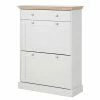 - Markante Schuhklappenkommode in Wildeiche und Weiß