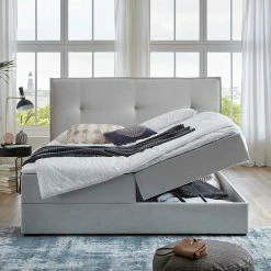 Stauraum Doppelbett In Hellgrau Stoff – Vensun