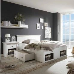 Weißes Landhaus Funktionsbett Chelles Mit Zwei Bettschubladen