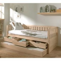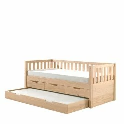 - Drei integrierte Schubladen mit Metallauszug und ein separater Bettkasten mit Rollen inklusive