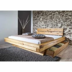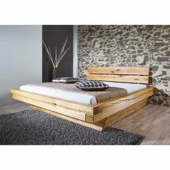 Wildeiche Balkenbett Mit Baumkanten Kopfteil – Satton I