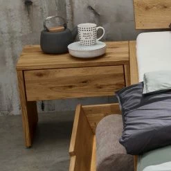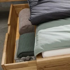 Wildeiche Schubkastenbett & Nachtkommoden – Aryvano (dreiteilig)